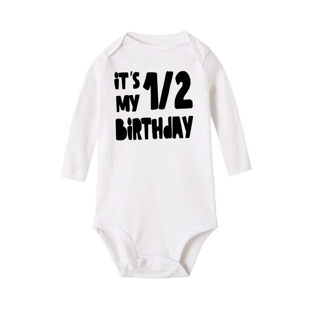 Baby Bodysuit It Is My Half Birthday Letters Print White Child 1/2 Birthday Party Outfit Clothes Baby Infant Shower Wear Gifts
