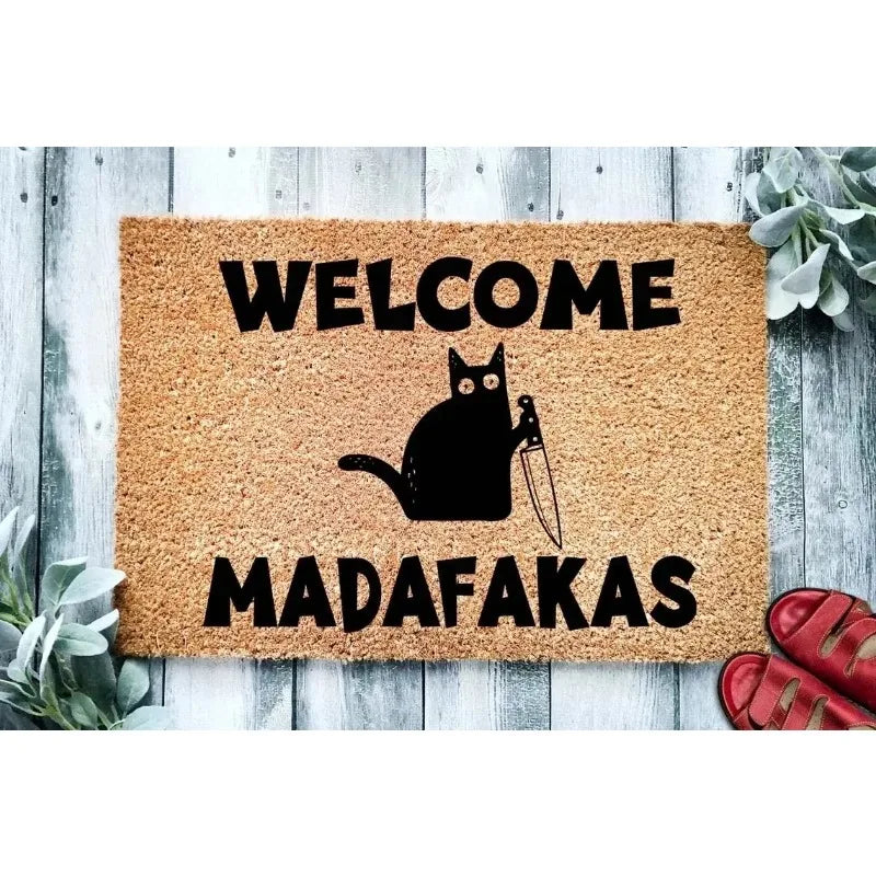 Dark Cat Welcome Madafakas Full Print Doormat Fun Doormat Home Decor Kitchen Bathroom Decor Give People Fun Gifts Fast Shipping