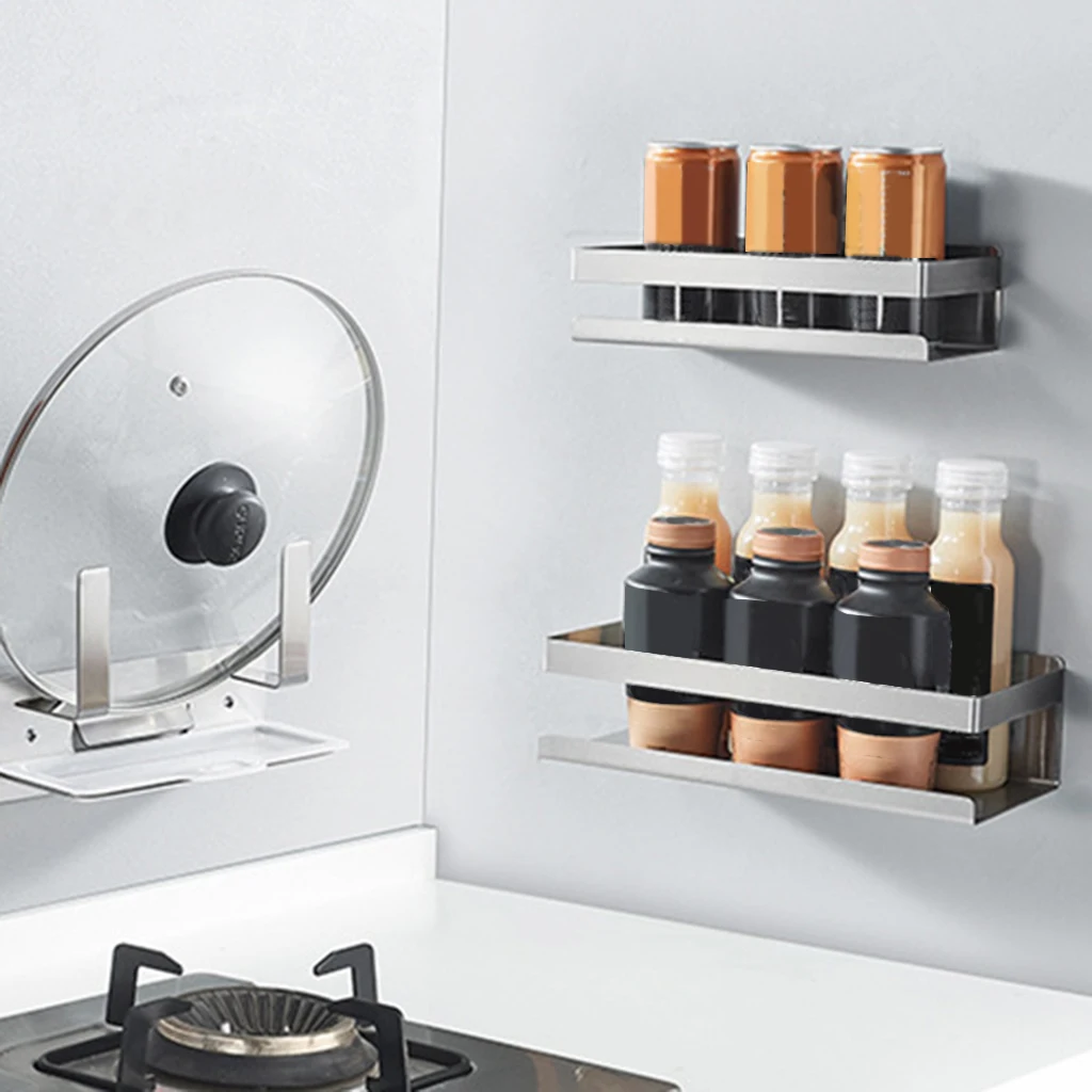 Spice Rack Wall Mounted Seasoning Rack, Stainless Steel Storage Holder Organizer Kitchen Supplies Accessory Save Space