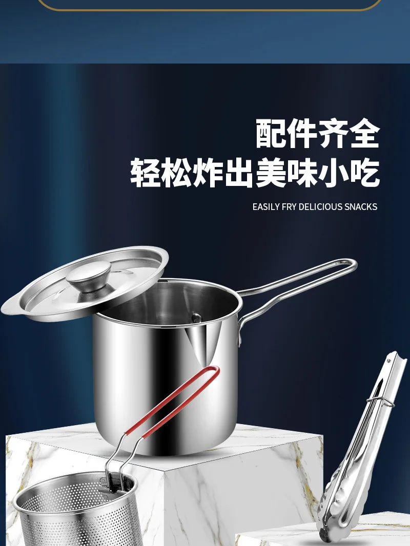 Stainless steel fryer with deep frying basket, multifunctional small pot, stainless steel french fries, fried chicken cookingpot