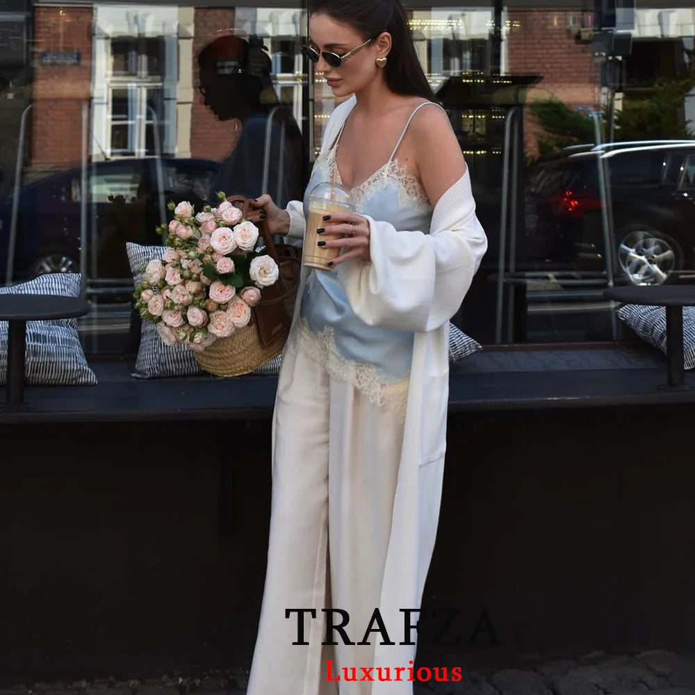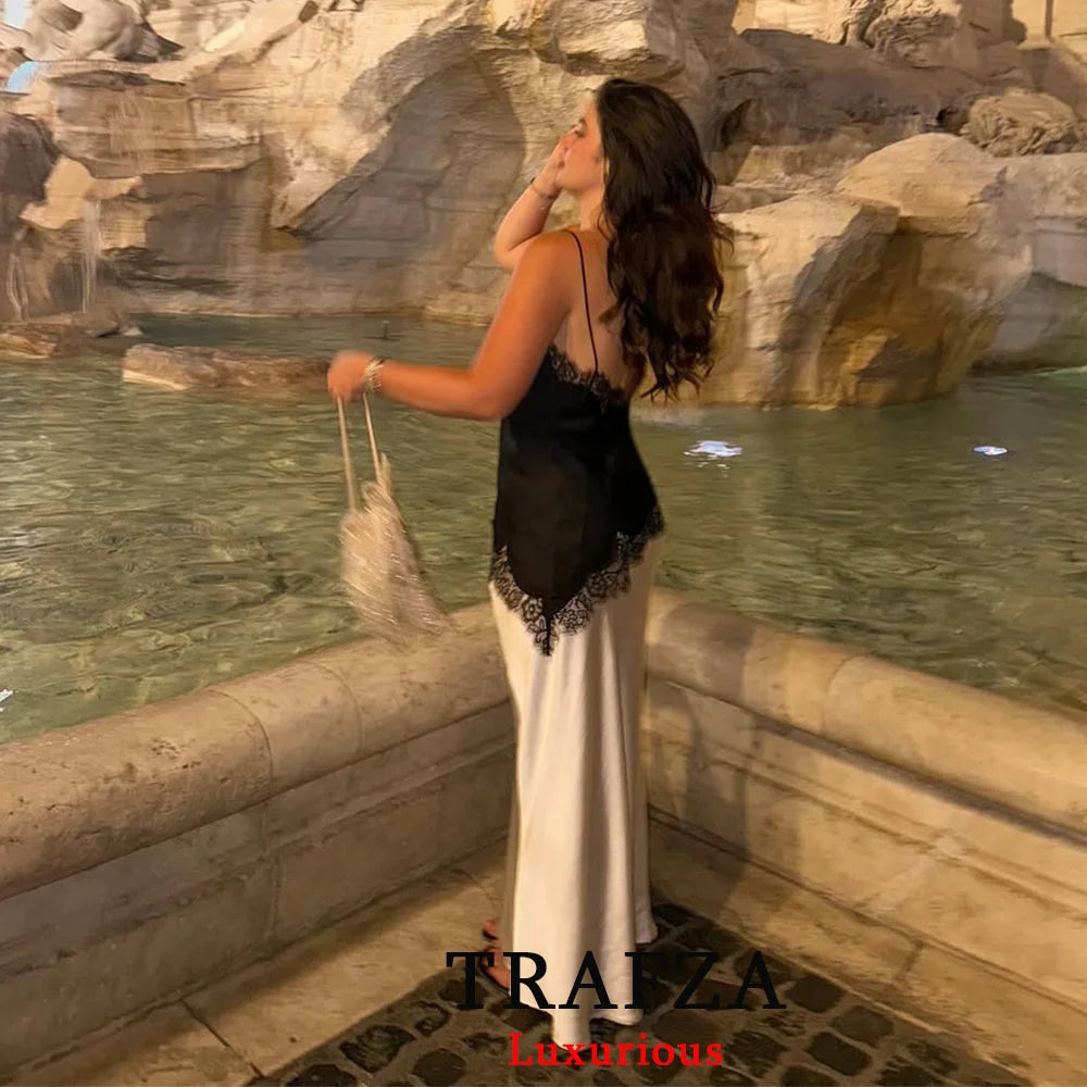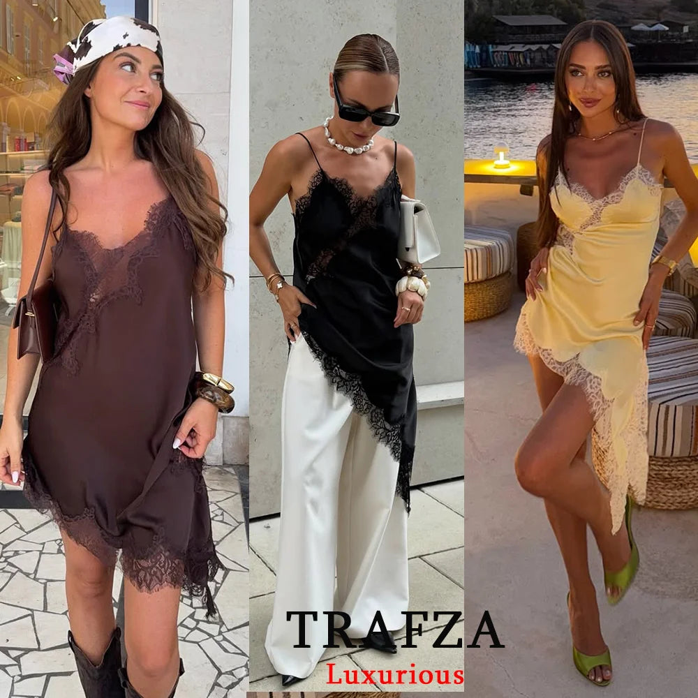 TRAFZA Sexy Chic Black Lace Cami Tops Women V Neck Patchwork Sleeveless Y2K Girl Tops Fashion 2025 Summer Holiday Beach Tops
