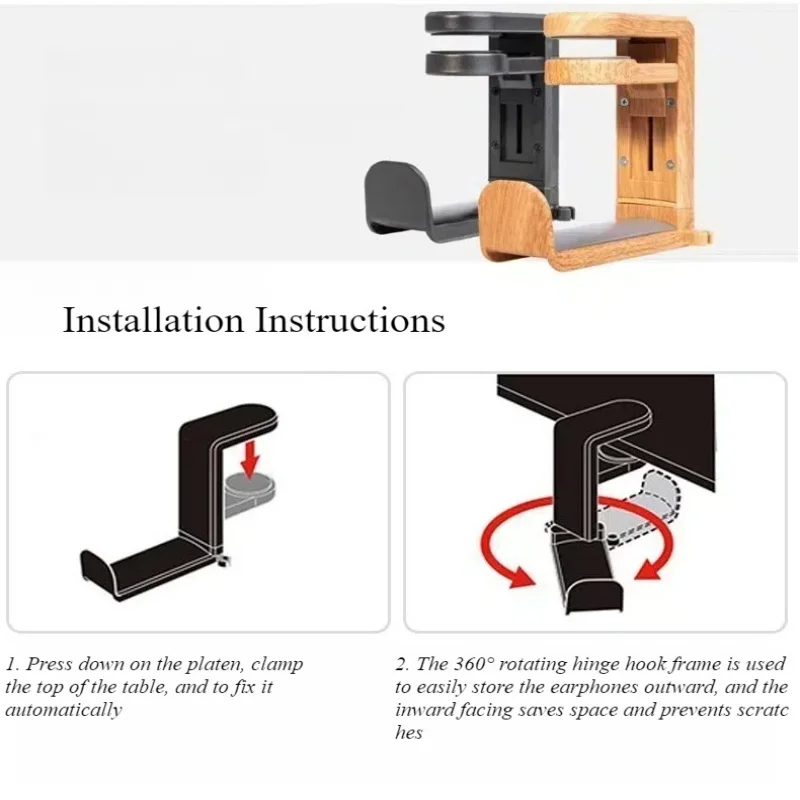 Name: Universal 360° Rotating Headphone Stand Desktop Headset Holder PC Gaming Wall Mount Desk Hanger Hook For Earphone Controller